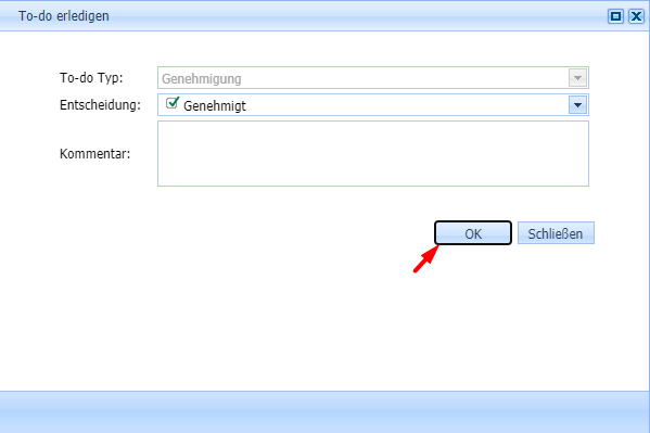 Wie zuvor bei „Genehmigung“ wird die zuständige Person hinzugefügt.