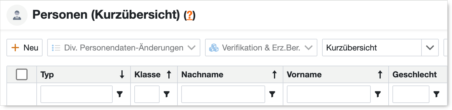 In der Personenliste hat jede Spalte ein eigenes Suchfeld.