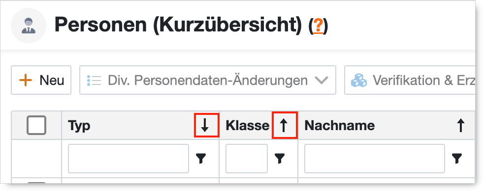 Mehrfachsortierungen sind ebenfalls möglich: Halten Sie die Shift-Taste gedrückt und klicken Sie auf weitere Spaltenköpfe.