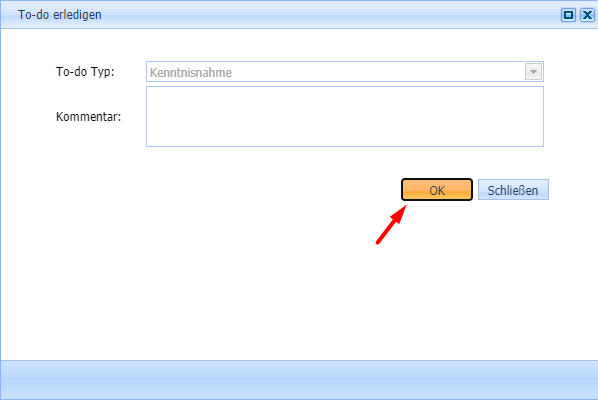 Die gewünschte Einmeldung wird ausgewählt und mit Klick auf „To-do erledigen“ vom Administrator zur Kenntnis genommen.