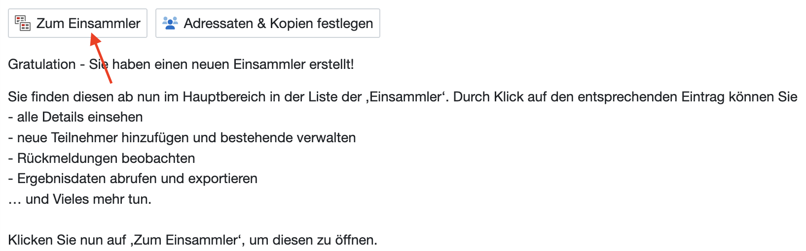 Gratulation - Sie haben einen neuen Einsammler erstellt!
