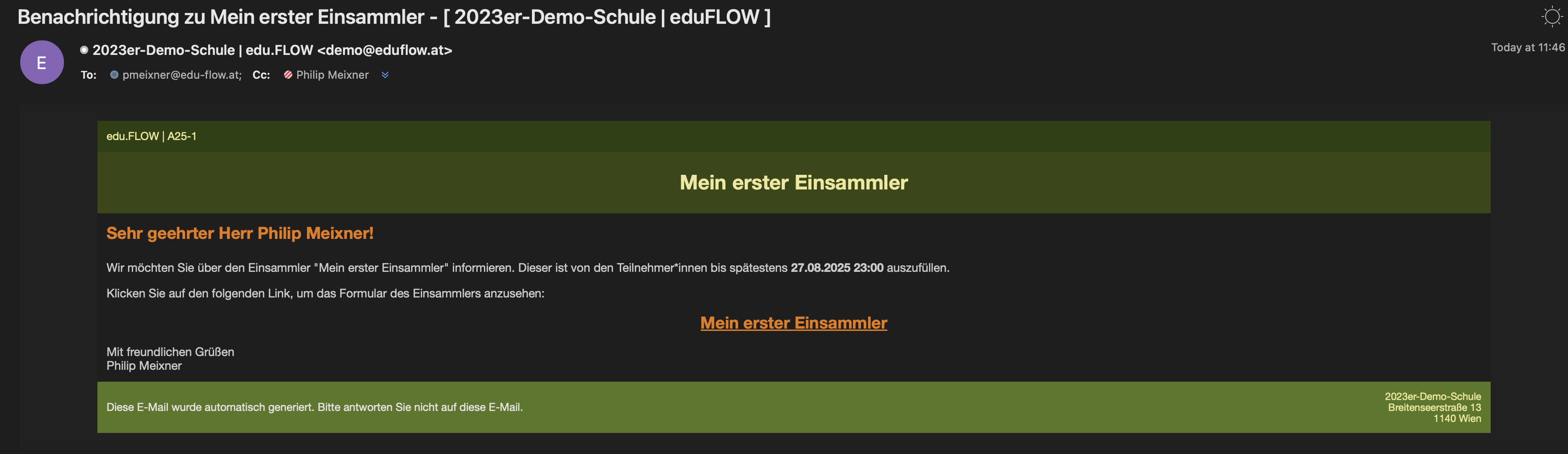Dann erhalten alle unter Empfänger*in E-Mail aufgeführten Adressaten den Einsammler per Mail zugesandt.