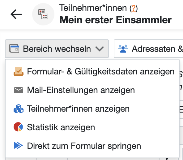 Direkt zum Formular springen führt Sie zum Formular, welches Sie diesem Einsammler zugewiesen haben.