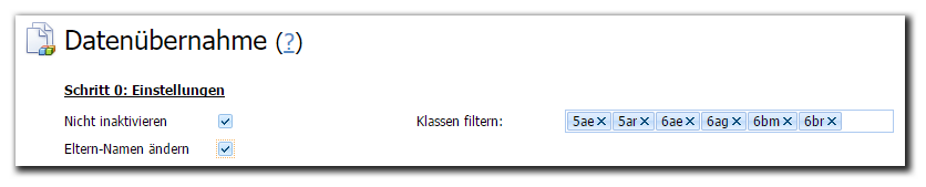 | Datenübernahme | Bei der Datenübernahme der Personendaten können nun mehrere Einstellungen vorgenommen werden. Etwa ob in der Datendatei fehlende Personen nicht inaktiviert oder ob nur Schüler bestimmter Klassen importiert werden sollen. ![]() | Datenübernahme | 17.1.4 |