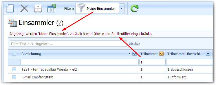| Einsammler | In der Anzeige der Teilnehmer/innen wurde die Spalten-Statistik verbesssert. Es werden nun nicht mehr Kombinationen, sondern die einzelene Werte summiert ausgewiesen.![]() | 19.2.5 | |
