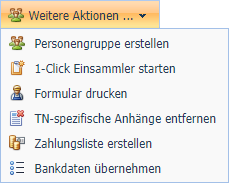 | Einsammler Teilnehmer/innen | Ausgewählte Teilnehmer/innen eines Einsammlers können direkt an einen neuen 1-Click Einsammler oder an eine neue Personengruppe übergeben werden. ![]() | Aktionen mit ausgewählten Teilnehmer/innen | 21.1.4 |