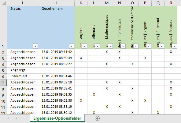 | Einsammler-Export | Im Excel-Export wird ein neues Tablellenblatt 'Ergebnisse-Optionsfelder' angezeigt. In diesem kann direkt abgelesen werden, welche einzelnen Optionsausprägungen jeder Teilnehmer gewählt hat.![]() | Einsammler auswerten und Ergebnisse archivieren | 18.1.5 |