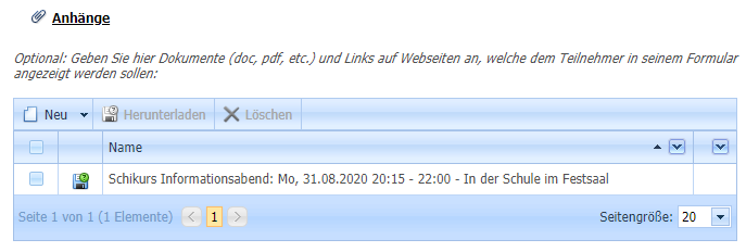 | Einsammler | Es können für Teilnehmer*innen indiviuelle Dateianhänge angegeben werden, welche nur der jeweiligen Person im Formular angezeigt werden. | Teilnehmerspezifische Dateianhänge | 22.1.7 |