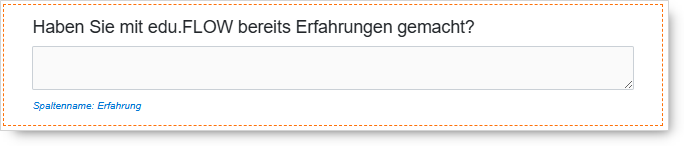 Vergeben Sie einen Spaltenname, wenn die Beschreibung des Feldes zu lange oder zu wenig aussagekräftig ist, z.B. könnten Sie bei einem Optionsfeld mit der Beschreibung „Haben Sie mit edu.FLOW bereits Erfahrungen gemacht?“ den Name „Erfahrung“ vergeben.