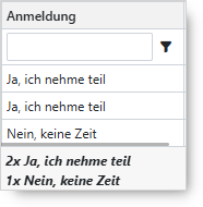 Die Summe kann für die Steuerelemente Datumsfeld, Auswahlliste, Optionsfelder und Markierfelder gebildet werden.
