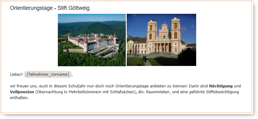 Hinweis: Unter „Teilnehmer“ wird immer jene Person verstanden, welche unmittelbar im Einsammler hinzugefügt wurde - diese ist nicht unbedingt ident, mit der Empfängerperson (= „Adressaten“) der Mail, welche das Formular ausfüllen soll. Ist der Teilnehmer nicht eigenberechtigt und haben Sie bei der Erstellung des Einsammler angegeben, dass in diesen Fällen das elektronische Formular von den Erziehungsberechtigten ausgefüllt werden soll, wird die Mail an die Erziehungsberechtigten geschickt. Die vordefinierten Teilnehmer-Felder beziehen sich jedoch immer auf den Schüler/ die Schülerin selber.