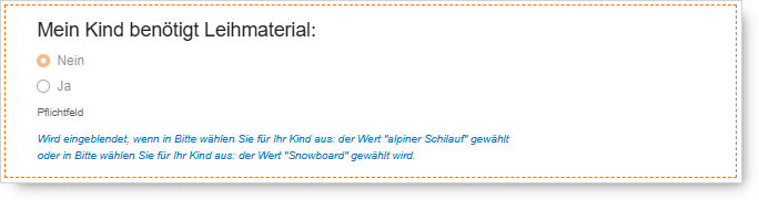 Manchmal soll ein Steuerelement nur aktiv oder sichtbar sein, wenn ein anderes Element einen bestimmten Wert hat, z.B. soll das Steuerelement „Führerscheinnummer“ nur sichtbar sein, wenn das Optionsfeld „Ich verfüge über einen Führerschein“ den Wert „Ja“ hat.