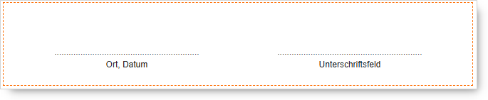 Soll ein Formular, wenn es auf Papier ausgedruckt wird, unterschrieben werden, so fügen Sie das Unterschriftenfeld hinzu. Zusätzlich zur Beschreibung, wer unterschreiben soll, wird auch ein Bereich für Ort und Datum eingefügt.