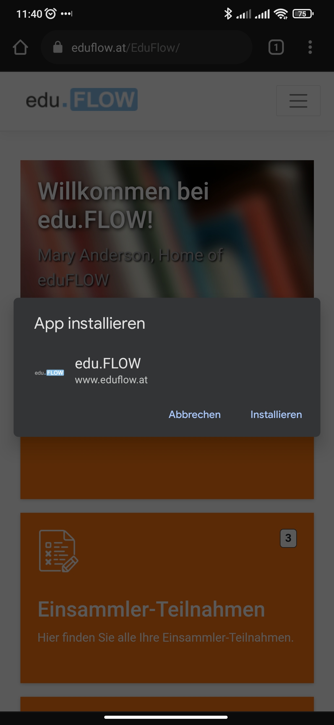 edu.FLOW lässt auf Android Geräten als Web-App installieren.