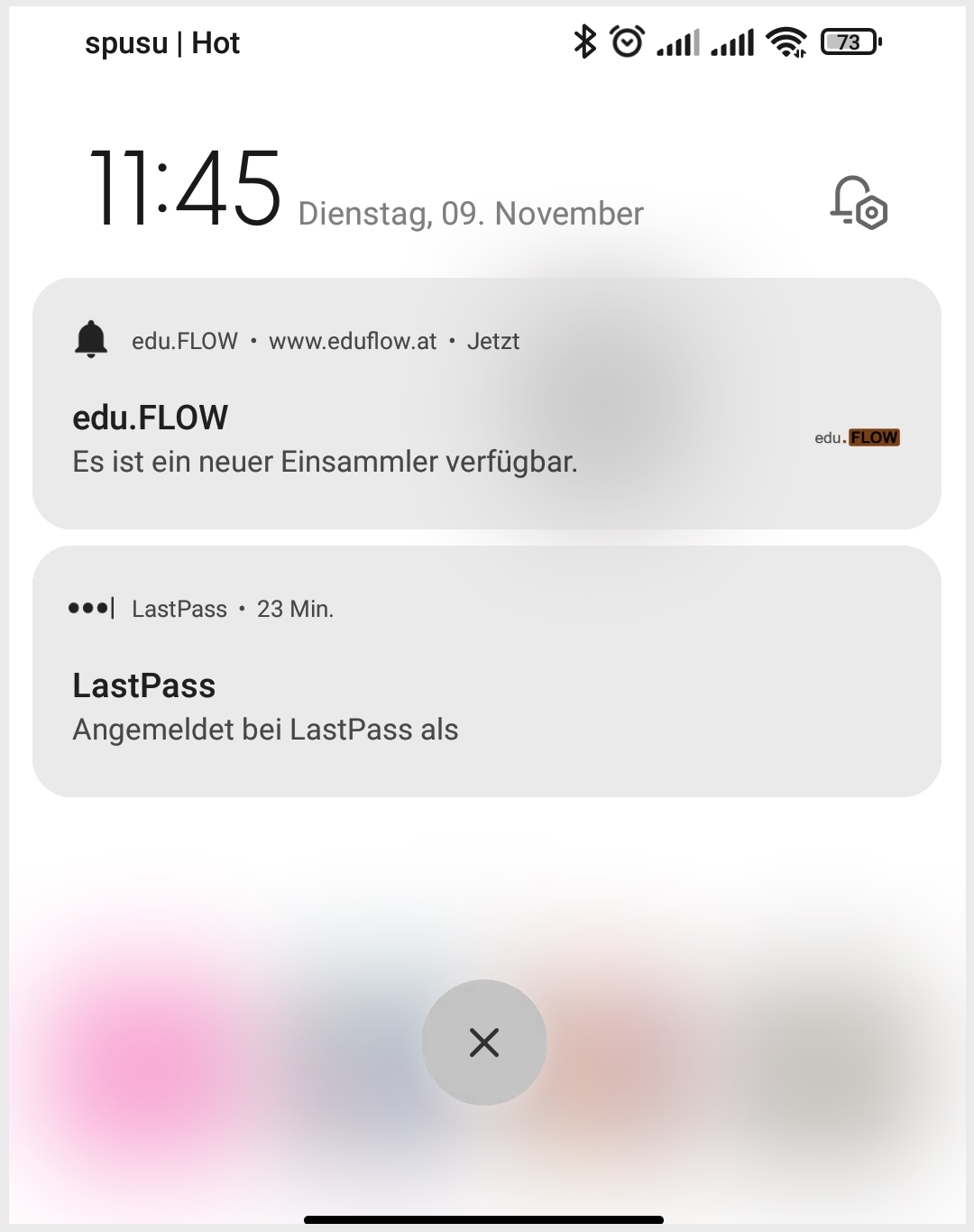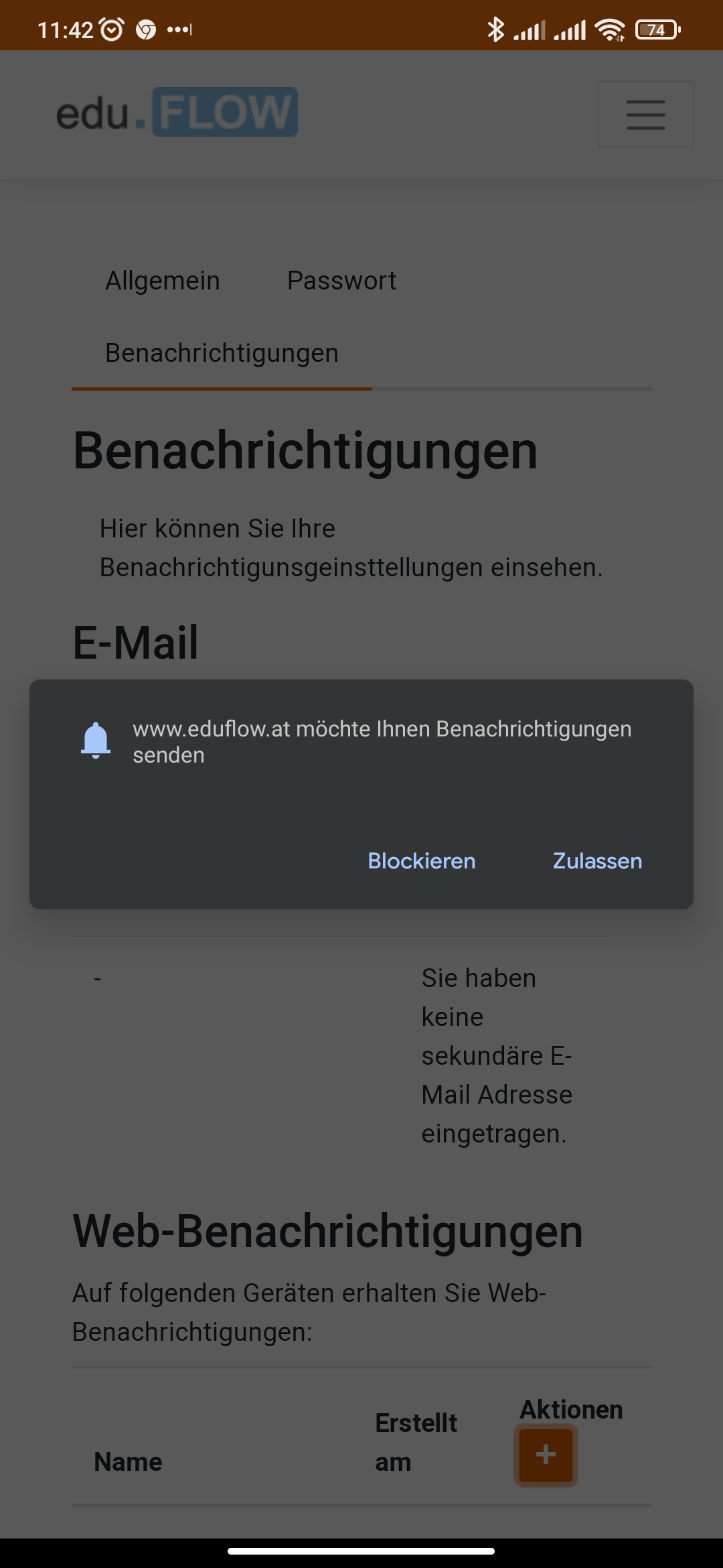 Auf den meisten Android-Geräten können Sie edu.FLOW - Push-Nachrichten aktivieren. Sie erhalten dann die Information zu einem neuen Einsammler nicht nur per Mail, sondern auch als Push-Nachricht direkt auf Ihr Gerät: